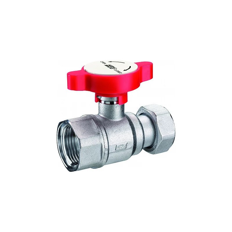 Кран шар.. 1"х1". хром.. с 2 накид.гайками.. красная ручка