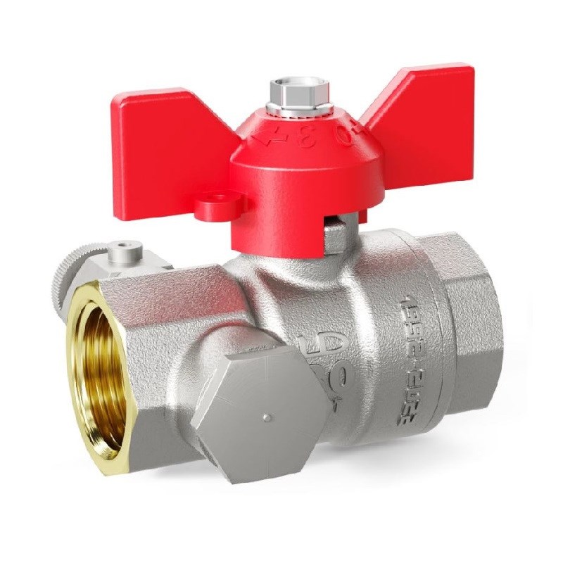 Кран шаровой Pride ВВ 1/2 44.15.В-В.С.Б с дренажем и воздухоотводчиком трехходовой латунь бабочка кр