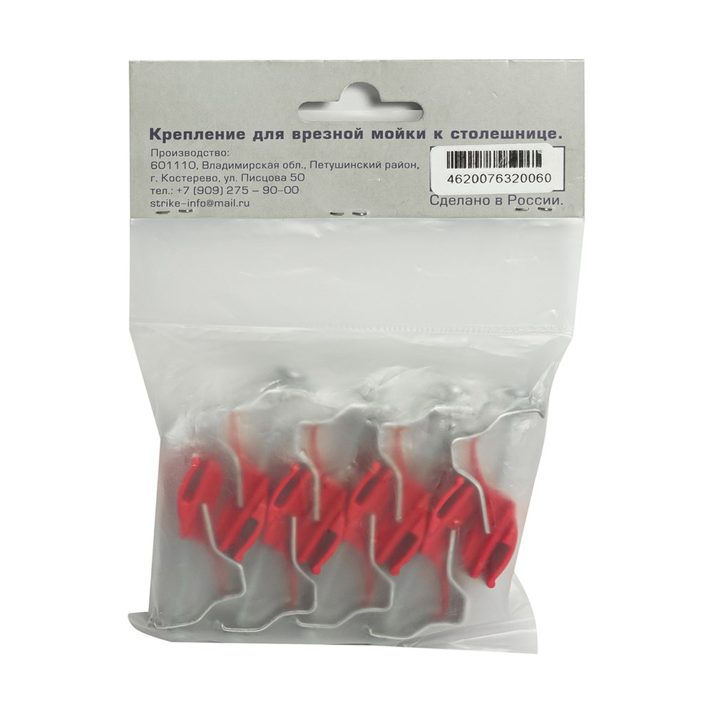 Крепеж д/накладной мойки (комплект 4шт + саморезы 4шт) в пакете на подвесе