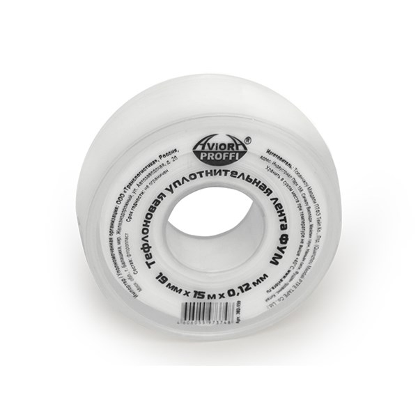 Тефлоновая уплотнительная лента предназначена для герметизации резьбовых соединений при выполнении сантехнических и монтажных работ, а также для ремонта водопроводных, тепловых, канализационных и других сетей, работающих под давлением не превышающем 10 МПа. Лента не теряет своих свойств со временем, не деформируется, не рвется, а также не вступает в реакцию в агрессивной химической среде. Данную ФУМ ленту отличает более эффективное и экономичное использование, поскольку ее толщина 120 мкм и плотность 0,4 г/см3.