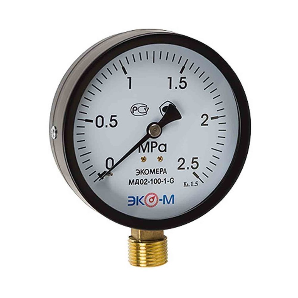 Манометр общетехнический ЭКОМЕРА МД02 для измерения давления газообразных и жидких, не сильновязких и кристаллизующихся сред, не агрессивных по отношению к медным сплавам (вода, пар, газ).