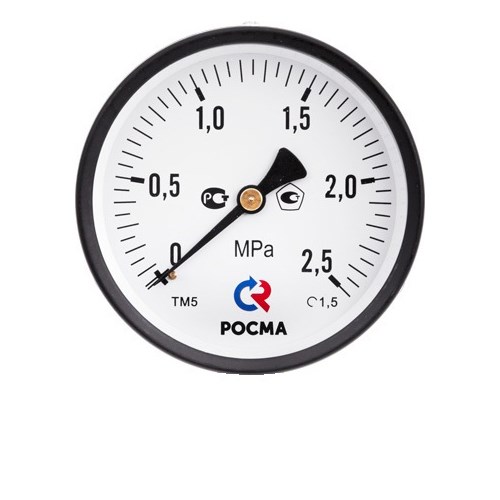 Манометр 63х1/4 10 бар ТМ-310Т (осевое аксиальное подкл., корпус сталь, минстекло) РОСМА
