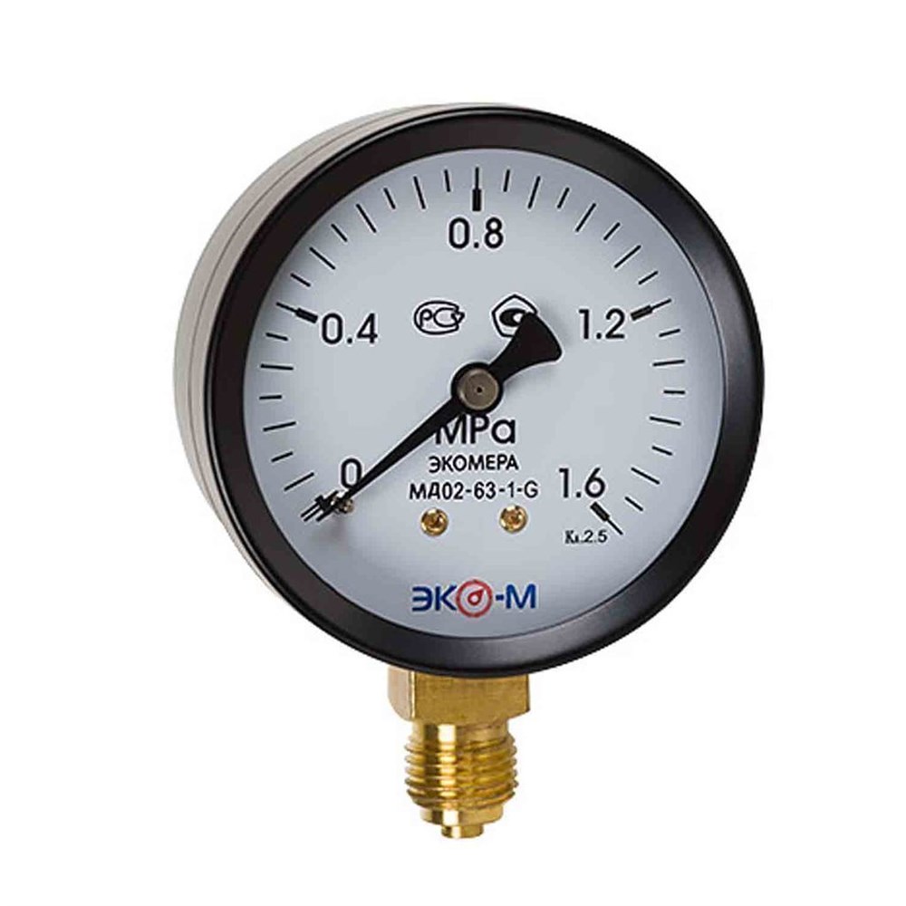 Манометр общетехнический ЭКОМЕРА МД02 для измерения давления газообразных и жидких, не сильновязких и кристаллизующихся сред, не агрессивных по отношению к медным сплавам (вода, пар, газ).