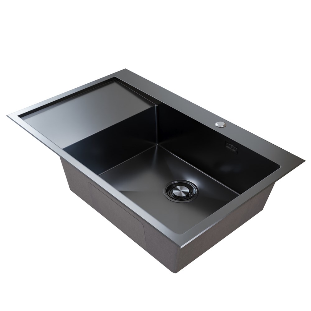 Мойка настол.монтаж 78х50 (3,0) прав. вып 3 1/2 MIXLINE PRO С ФАСКОЙ 20см с сифоном (черный графит)