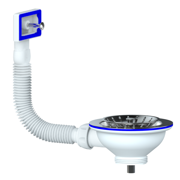 Перелив д/мойки 3 1/2" (112 мм) с нерж. сеткой прямоуг. E155 (винт, шток, ручка-латунь) UNICORN