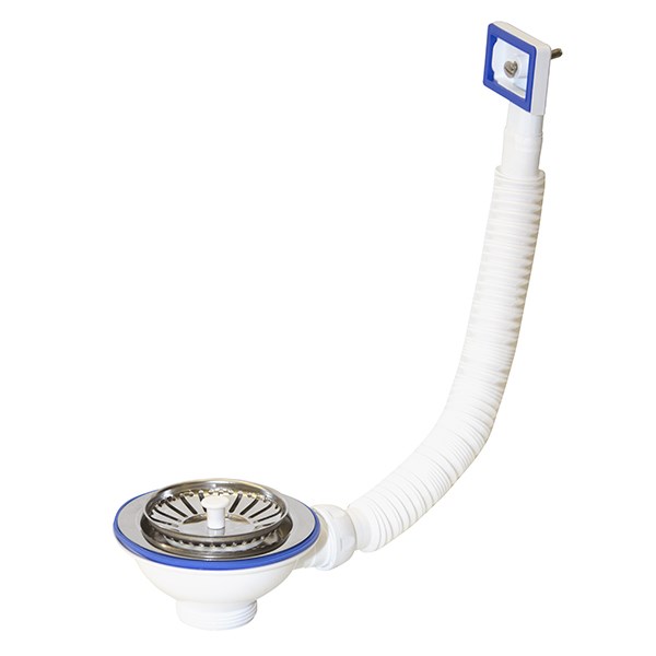 Перелив д/мойки 3 1/2" (112 мм) с нерж. сеткой прямоуг. E155P (винт, шток, ручка-пластик) UNICORN