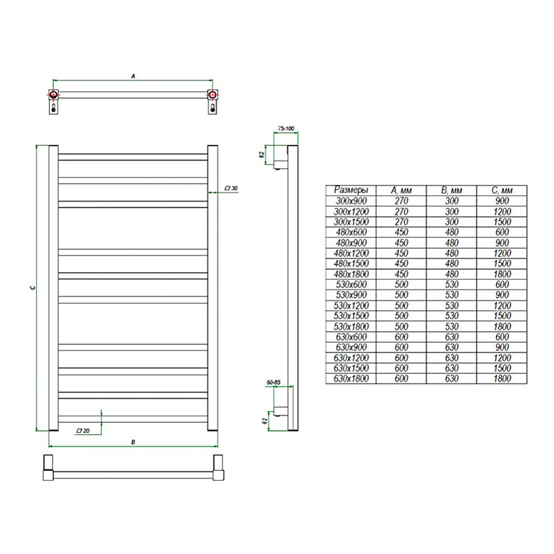 Полотенцесушитель Grota ECOFORTE 530х900NP EL электрический, без тэна, хром