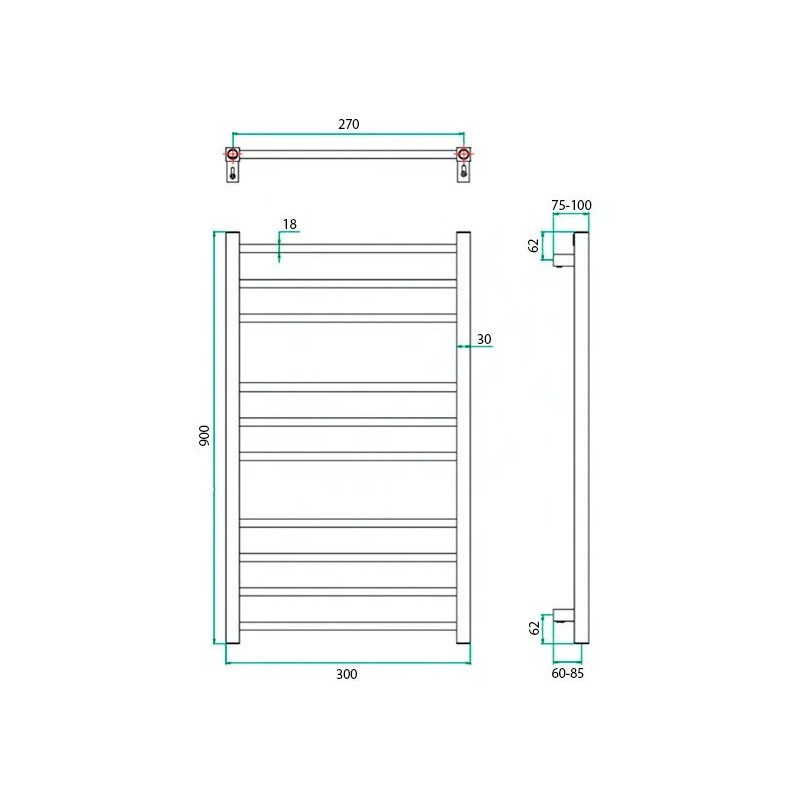Полотенцесушитель Grota ECOFORTE 530х900NP EL электрический, без тэна, хром