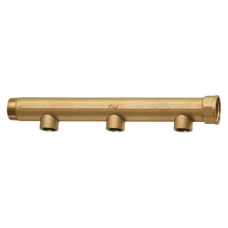 Проходной коллектор 1 1/4" (ВР-НР) с 3 отводами 3/4" (ВР) из латуни