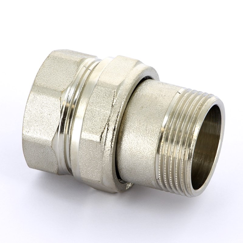 Разъемное соединение прямое НВ 1 1/4" с плоской прокладкой, никелированная латунь