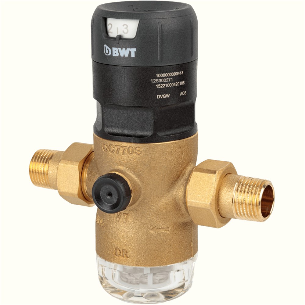 Редуктор давления 1" 1.5-7 бар PN16 D1 Eco латунь, для х/в, пластик. колба, с разъем. соед