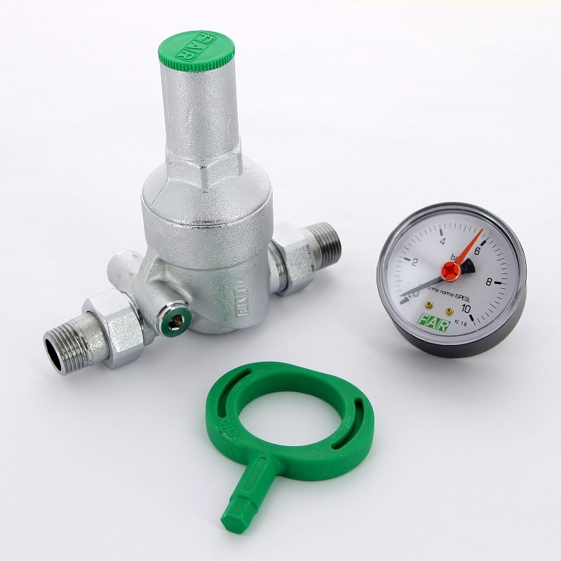 Редуктор давления 1" 1.5-7 бар PN16 D1 Eco латунь, для х/в, пластик. колба, с разъем. соед