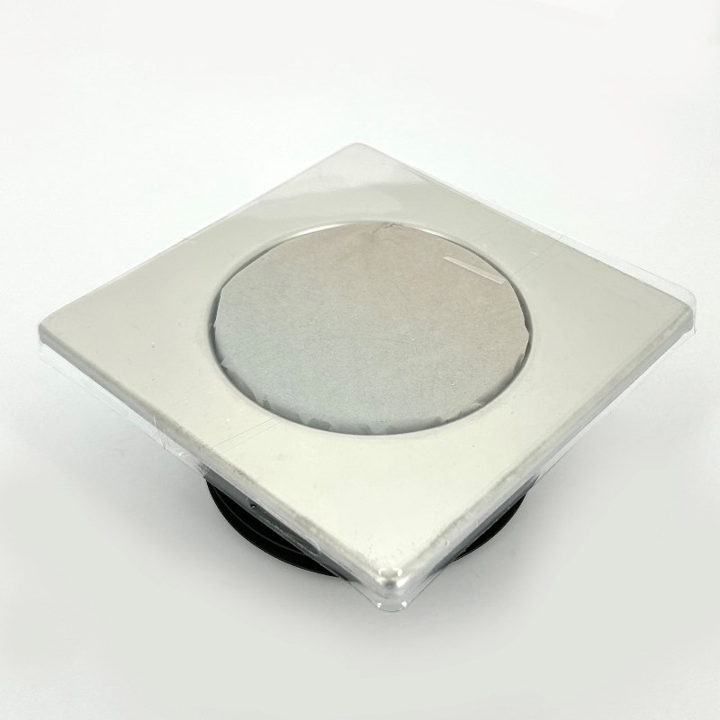 Решетка 150 х 150 мм с фильтр. сеткой, обр. клапаном и "сухим" затвором, выход 110 мм, нерж.сталь