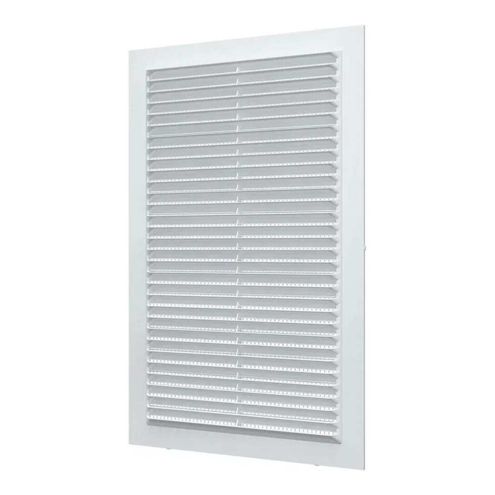 Вентиляционная решетка имеет наклонные жалюзи и оснащена защитной сеткой от насекомых.