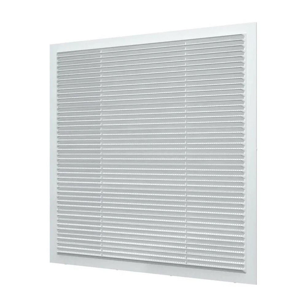 Вентиляционная решетка имеет наклонные жалюзи и оснащена защитной сеткой от насекомых.