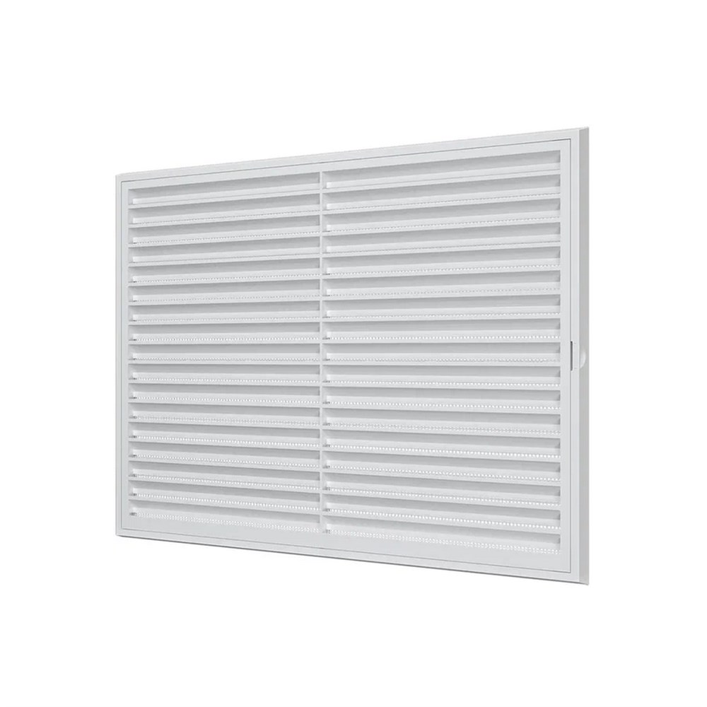 Вентиляционная решетка имеет наклонные жалюзи и оснащена защитной сеткой от насекомых.