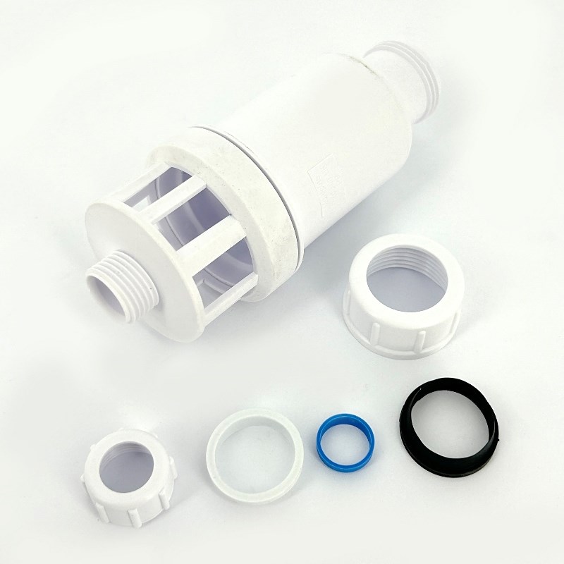 Сифон трубный S-образный для слива бытовой техники c вентиляционным клапаном и декоративной накладко