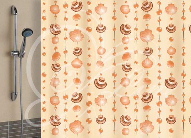 Штора для ванной полиэтилен 180*180 бежевый фон с кольцами