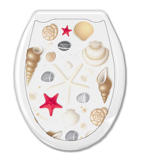Сиденье для унитаза "Универсал Декор" Ракушки на белом Европласт