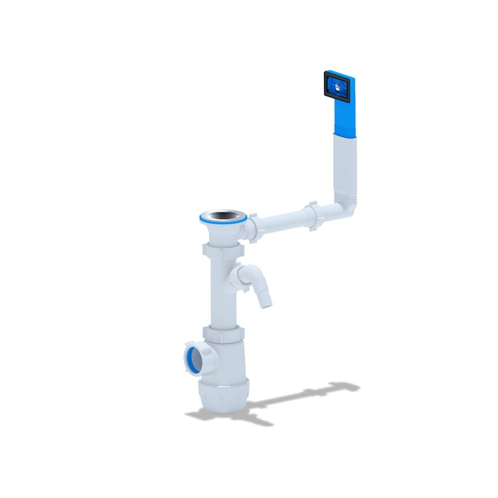 Сифон для кухонных моек с диаметром сливного отверстия 50мм, бутылочного типа с увеличенным корпусом, с разборным выпуском и нержавеющей решеткой , с отводом для подключения бытовой техники. С жестким прямоугольным переливом для моек из нержавеющей стали. Корпус перелива оборудован универсальной прокладкой для круглых и прямоугольных моек, нужная сторона прокладки достигается путем переворота. Выход для подключения к канализации 40мм.