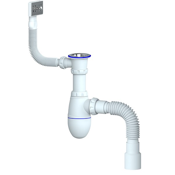Сифон 1 1/2*40 B422 с прямоуг. переливом, с гофрой 40*40*50 UNICORN