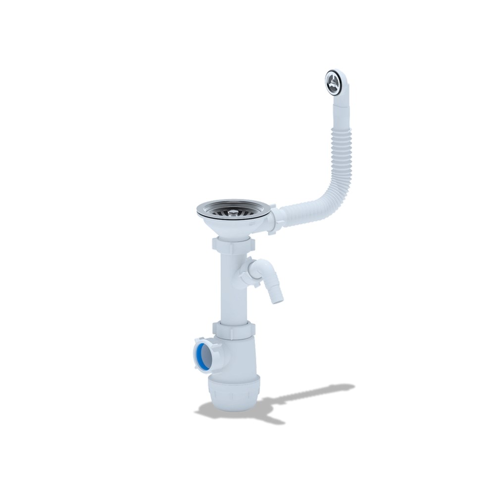Сифон A1042S с разборным выпуском и нержавеющей решеткой, с отводом для подключения бытовой техники, с гибким круглым переливом для моек из композитных материалов. Выход для подключения к канализации 40мм. Длина винта 40мм.
