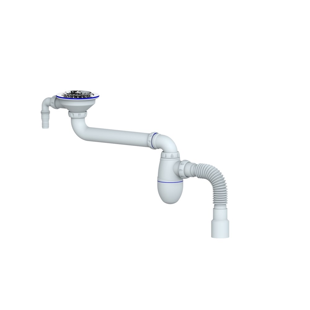 Сифон со смещением позволяет установить умывальник/мойку на любой высоте, а также освобождает дополнительное пространство под ними, поскольку гидрозатвор сифона в установленном виде будет располагаться дальше от центра умывальника или мойки.