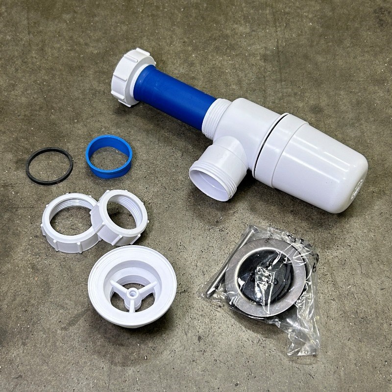 Сифон трубный P/S-образный 1 1/2" х 40 мм, два адаптера слива быт. техники, выход 40 мм компрес.