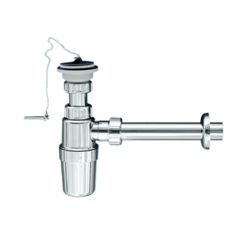 Сифон бутылочный 1 1/4" x 32 мм с вып. 60 мм нерж., пробкой, цеп., выход 32 мм, хром
