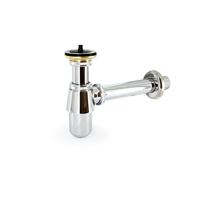 Сифон бутылочный Classic 1 1/4" с выпуском и пробкой, отвод 200 мм, с розеткой, хром