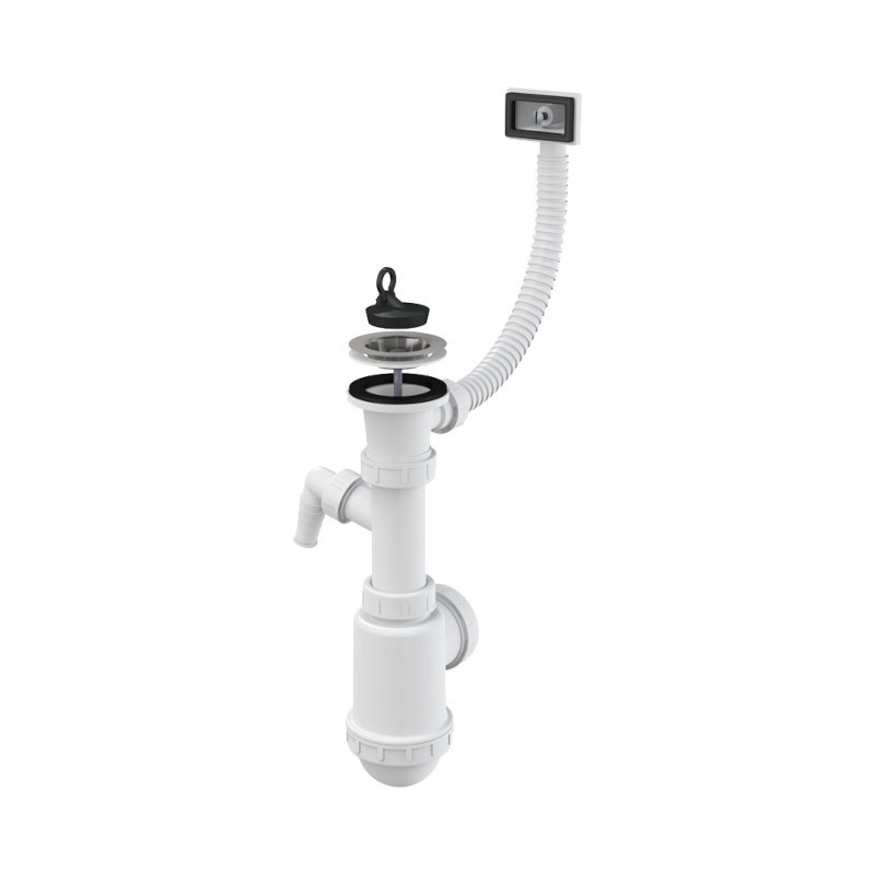Сифон бутылочный для мойки с нерж. решеткой D70 мм, с переливом и отводом для быт.тех.