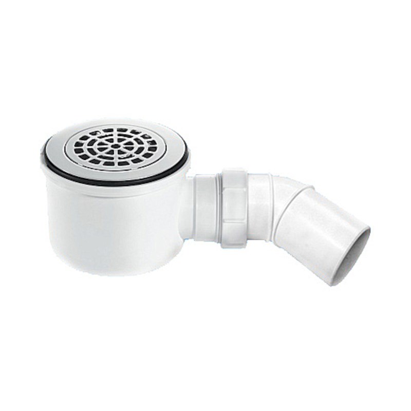 Сифон бутылочный для поддона с выпуском (H85мм; латунь выпуск/сливная решётка-дизайн "Радиальный" D1