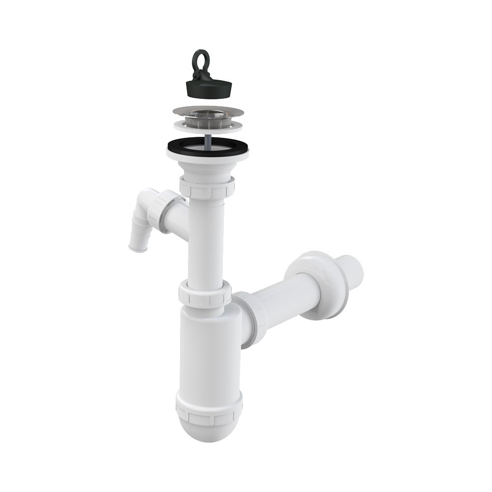 Сифон бутылочный для раковины 1 1/4" x 40 мм со штуцером и нерж. peшeткой DN63, пластик, белый