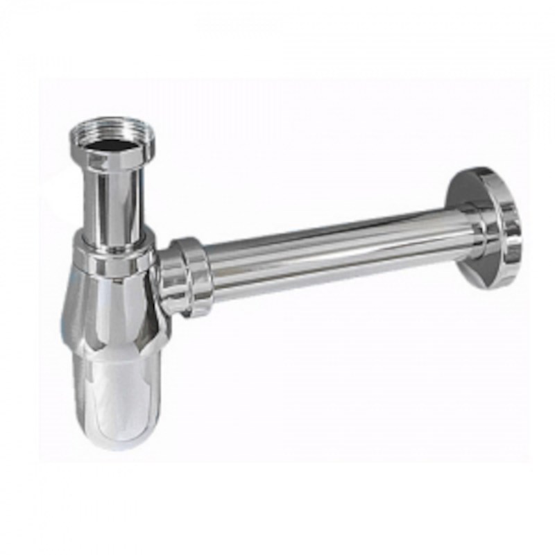 Сифон бутылочный латунный без выпуска (1 1/4"х32мм) с высокой колбой, отводной трубой (L200мм, D32мм