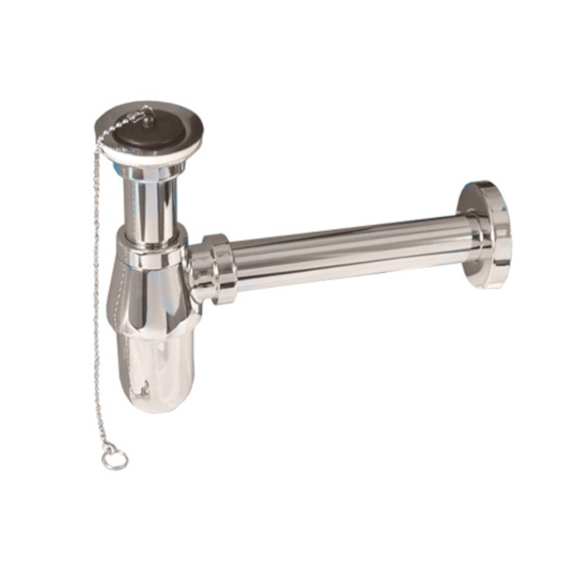Сифон бутылочный латунный с выпуском (1 1/4"х32мм, D60мм сливная решётка), высокой колбой, пробкой,