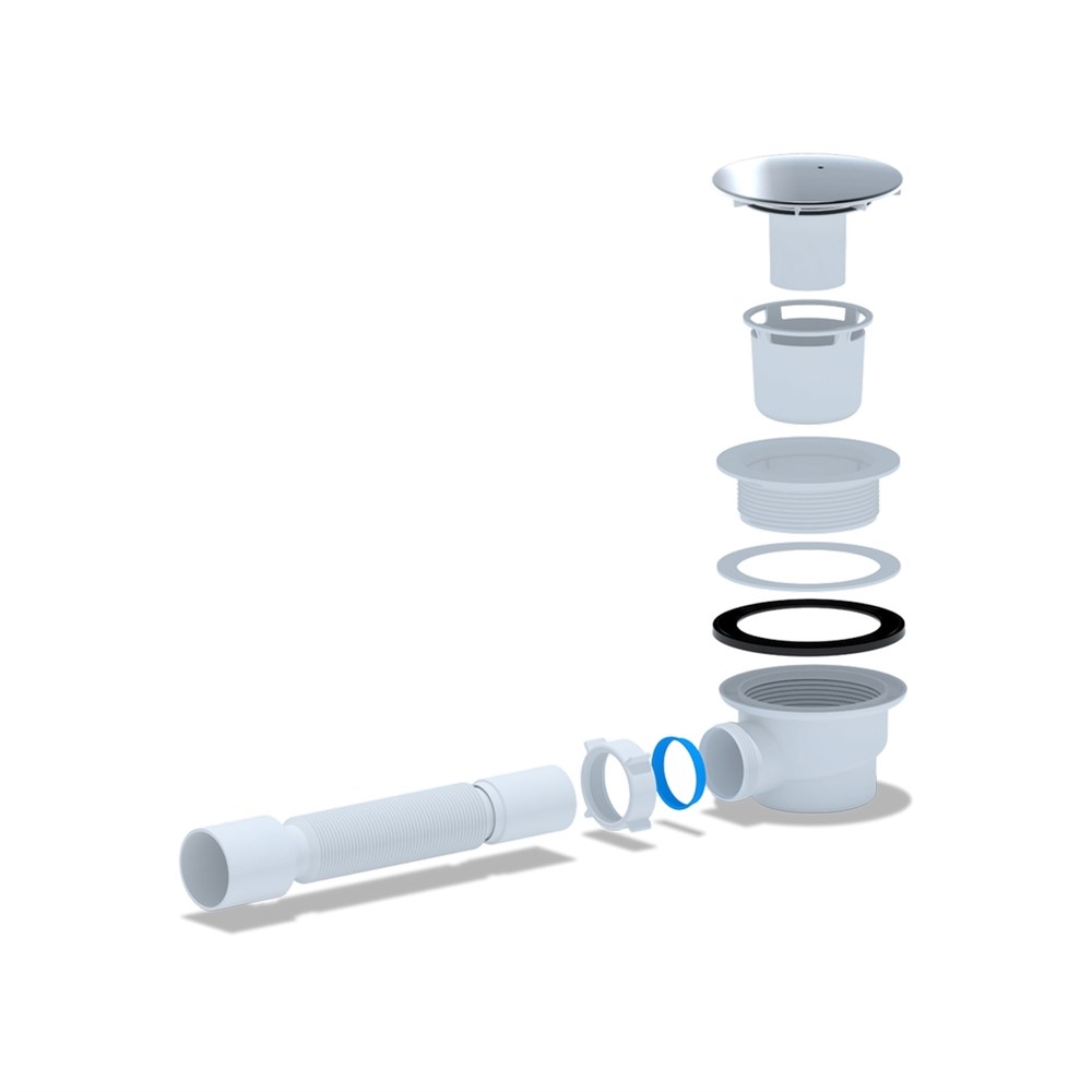 Сифон для душевого поддона со сливным отверстием 50мм. Монтажная высота 77мм.