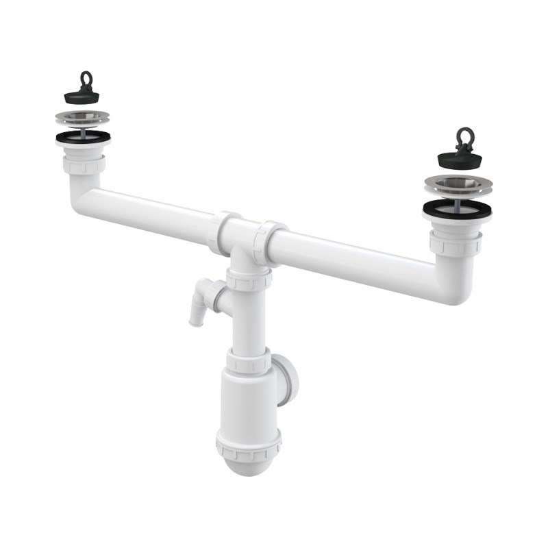 Сифон для двойной мойки с нерж. решетками D70 и штуцером для быт.тех.