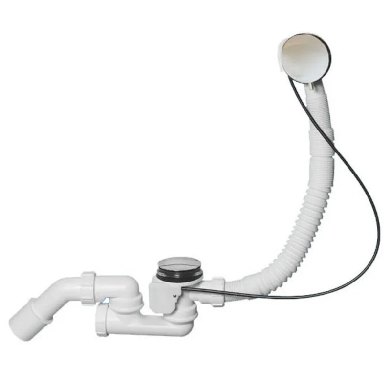 Сифон для ванн/поддонов с выпуском и переливом (L380-700ммхD34мм поворотное управление, D70мм нержав