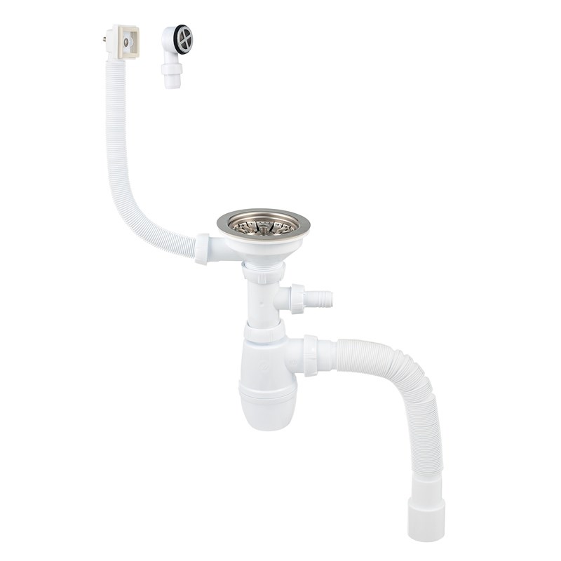 Сифон Эконом 1 1/2 х 40 мм с круглым и прямоугольным переливом L300 мм, нерж. решетка эконом D114 мм