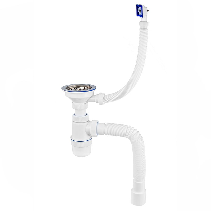 Сифон Элит 1 1/2 х 40 мм, нерж. чашка D114 мм, L300 мм и с гофротрубой L800 мм 40 х 40/50 мм