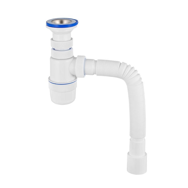 Сифон Элит 1 1/2 х 40 мм, нерж. чашка D70 мм и с гофротрубой L800 мм 40 х 40/50 мм