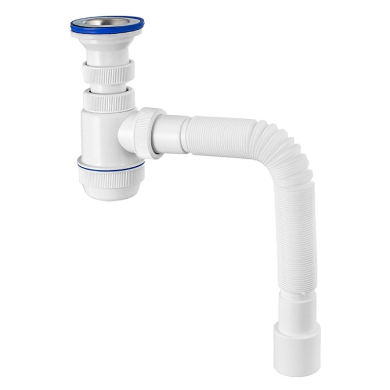 Сифон Элит 1 1/2 х 40 мм с удлинённым вып., нерж. чашка D70 мм, гофротруба L800 мм 40 х 40/50 мм