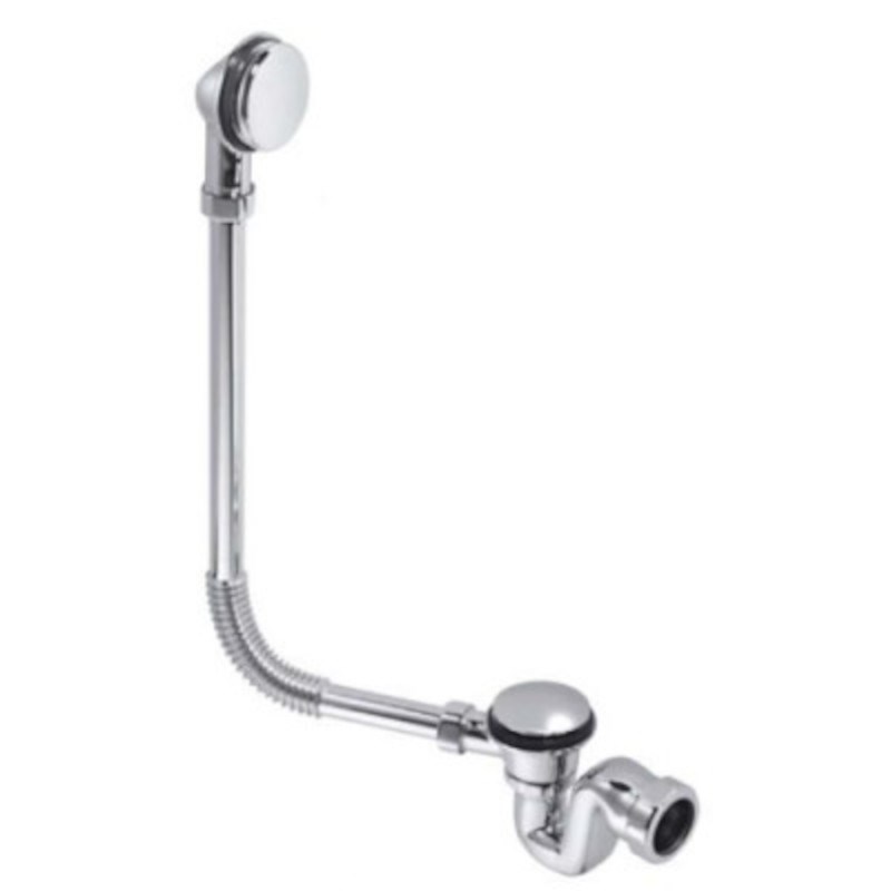Сифон латунный для ванн с выпуском и переливом (1 1/4"х40мм, L640ммxD25мм, сливная решётка/пробка ти