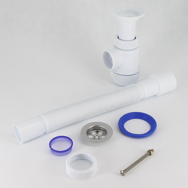 Сифон Мини Элит 1 1/2 х 40 мм с литым выпуском, нерж. чашка D63 мм, гофротруба L800 мм 40 х 40/50 мм