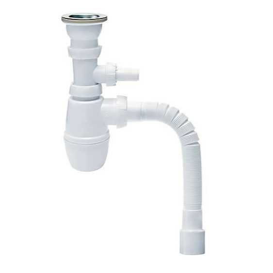 Сифон Минор с выпуском 1 1/4 х 40 мм с отводом и с гофротрубой L800 мм, 40 х 40/50 мм