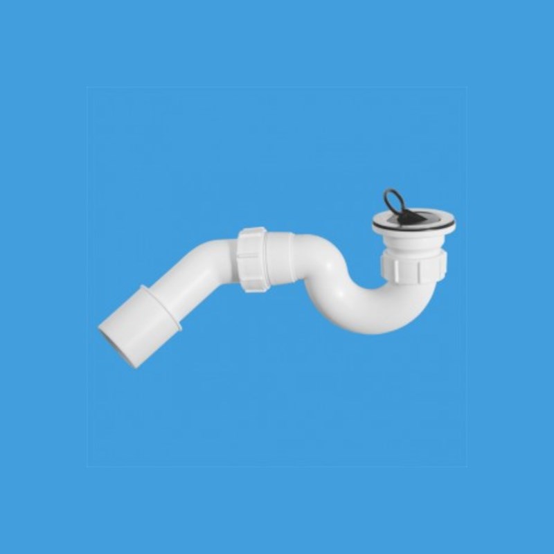 Сифон трубный P-образный 1 1/2" х 40 мм для ванн/поддонов, пробка, нерж. реш. 70 мм, выход 40/50 мм