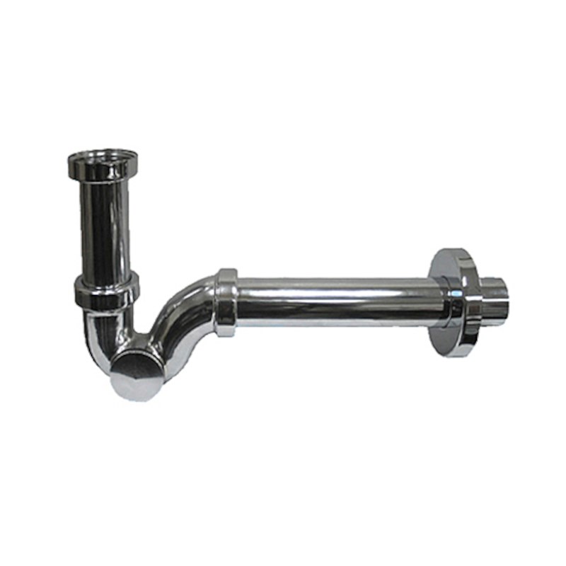 Сифон трубный P-образный латунный без выпуска (1 1/4"х32мм) с ревизией, отводной трубой (L200мм, D32