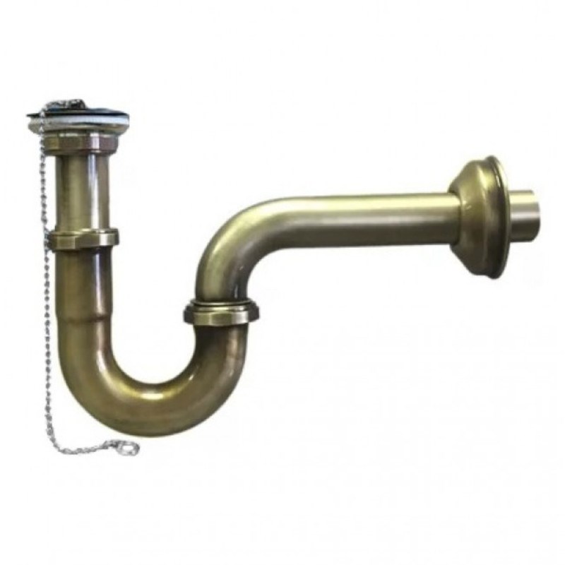 Сифон трубный P-образный латунный с выпуском (1 1/4"х32мм, D60мм нержавейка сливная решётка), пробко