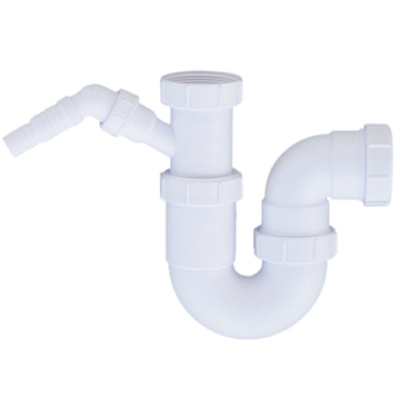 Сифон трубный Р-образный без выпуска (2"х50мм) с адаптером под углом для слива бытовой техники; выхо