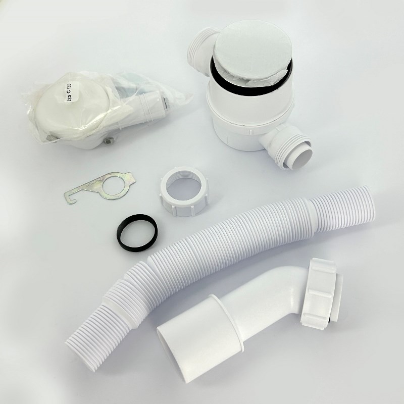 Слив-перелив L=330-700 х 34 мм с раздв. перел., 70 мм слив, пробка, выход 40/50 мм, белый